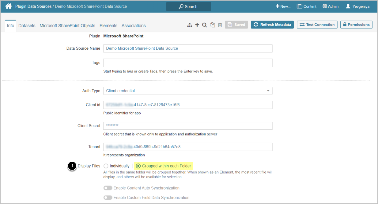 Access Admin > Collection & Storage > Data Sources > Microsoft SharePoint Data Source Name Link