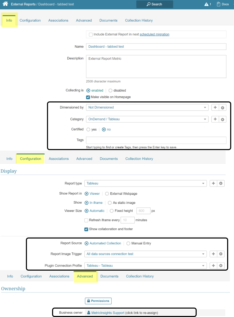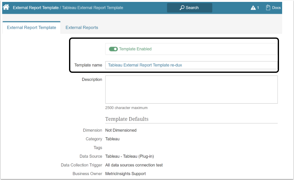 - All of other Template Defaults are copied from chosen External Report