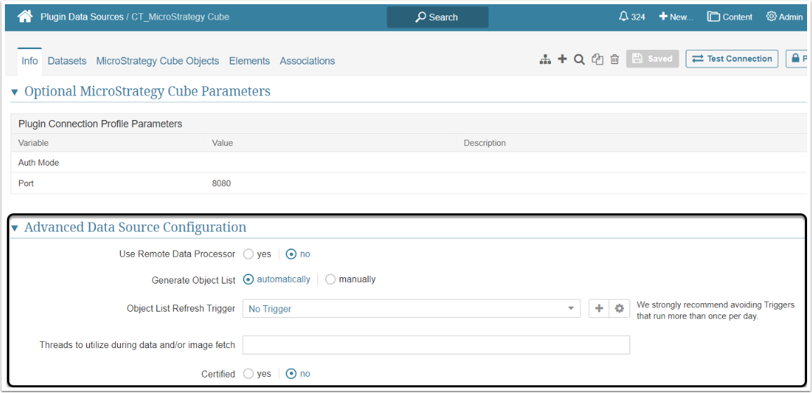 Advanced Configuration settings can be set to default values unless Data Source requires more precise tuning. For more details on how to proceed, refer to Advanced Data Source Configuration.