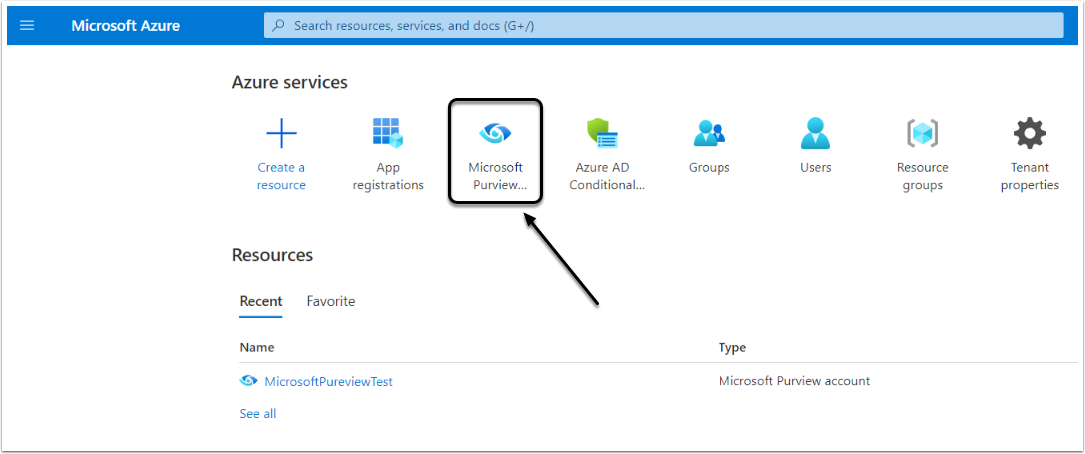 - Find and click the Azure Purview option