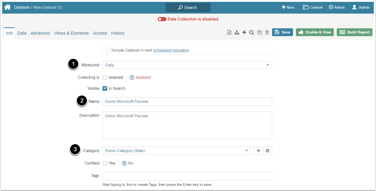 - Category: Specify the Category to place the Dataset