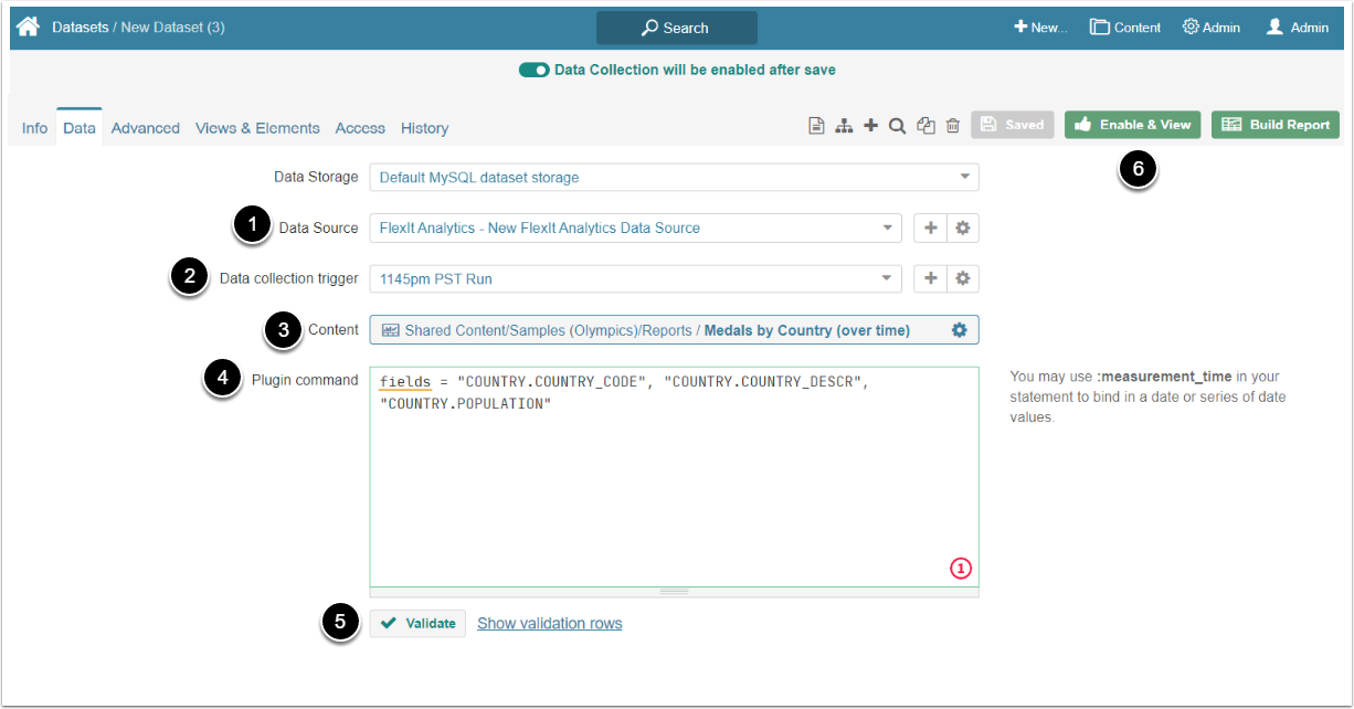 This article details how to create a Dataset from FlexIt Analytics Plugin.