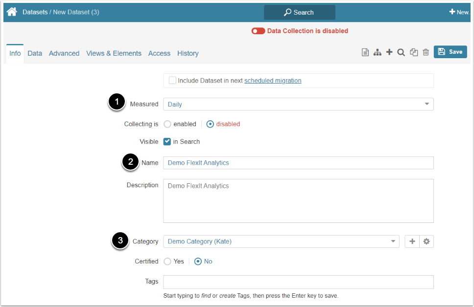 - Category: Specify the Category to place the Dataset