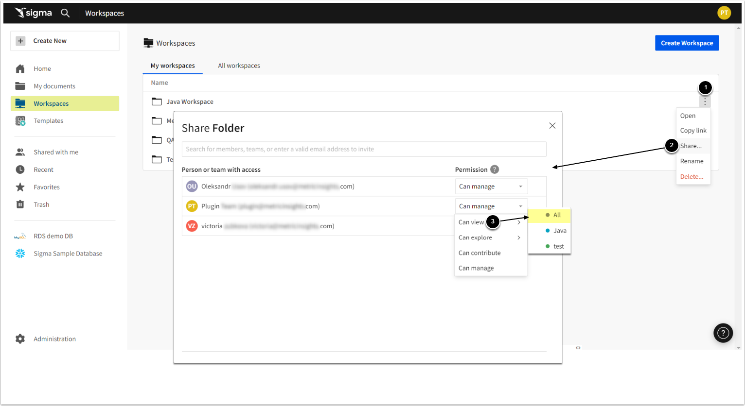 2. Share Workspaces