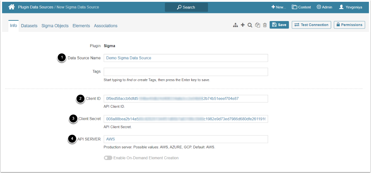 - Provide API SERVER value- It is specified under Administration > Account > Site in Sigma