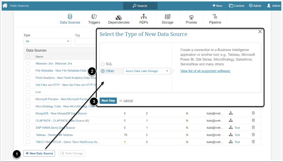 This article describes the creation of a Plugin Data Source to connect to Azure data Lake Storage. This Data Source will allow data from existing Azure Data Lake Storage objects to be used in building elements using Metric Insights tools.