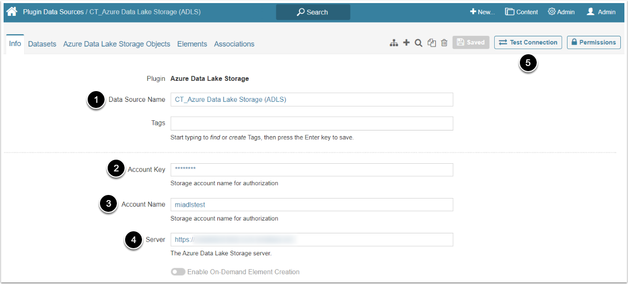 - Server: Specify the URL address of the Azure Data Lake Storage server