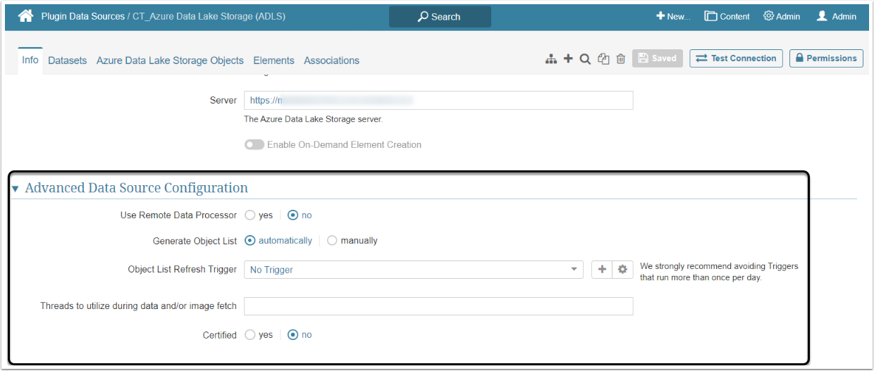 Advanced Configuration settings can be set to default values unless Data Source requires more precise tuning. For more details on how to proceed, refer to Advanced Data Source Configuration.