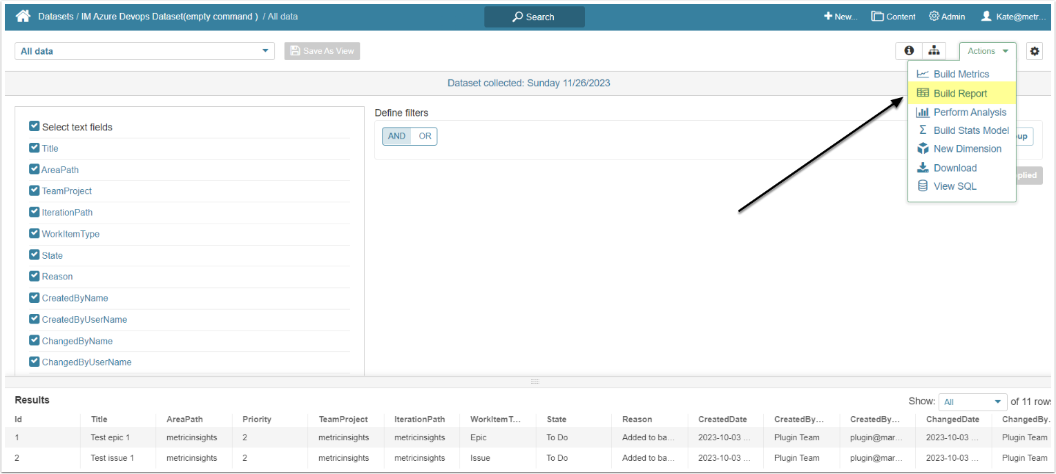 This article explains how to create a Dataset and Report from Azure DevOps .