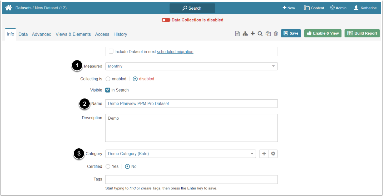 - Data collection trigger: Specify the Data collection trigger that will be used to collect data for Dataset