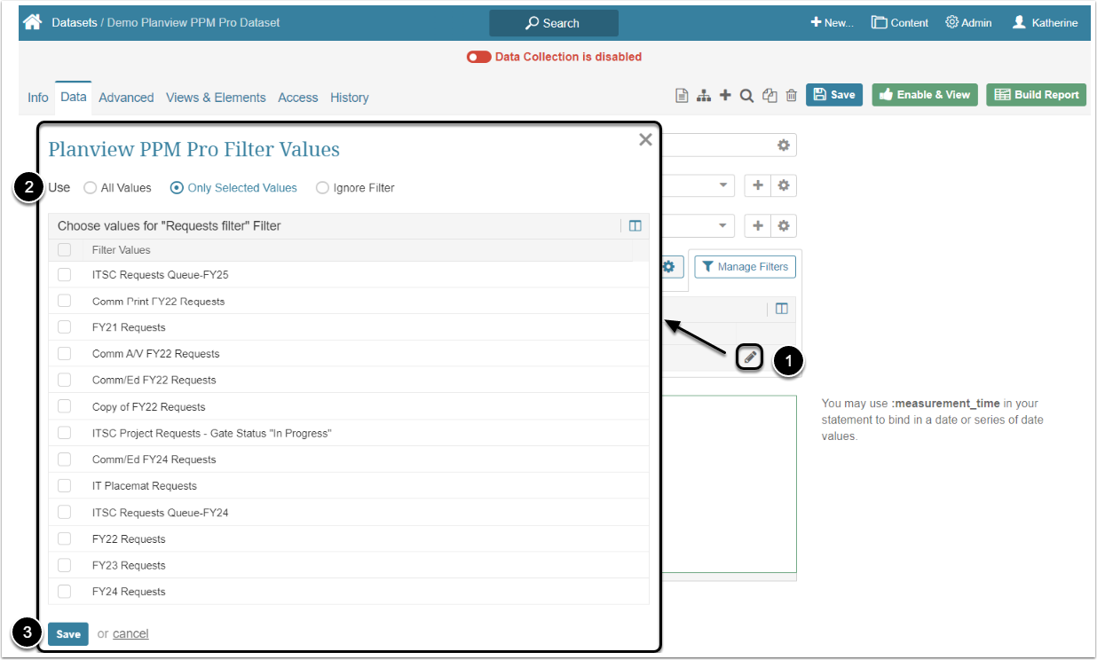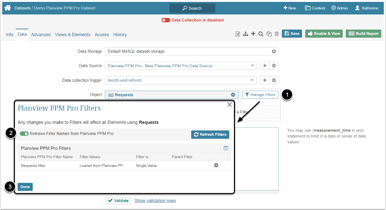 - Retrieve Filter names from Planview PPM Pro: Enable this toggle switch and wait for the Filters list refreshing