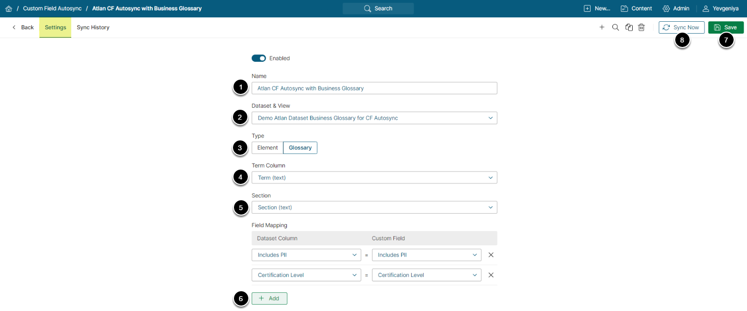 For more information on Glossary Autosync, refer to Custom Field Auto Synchronization.