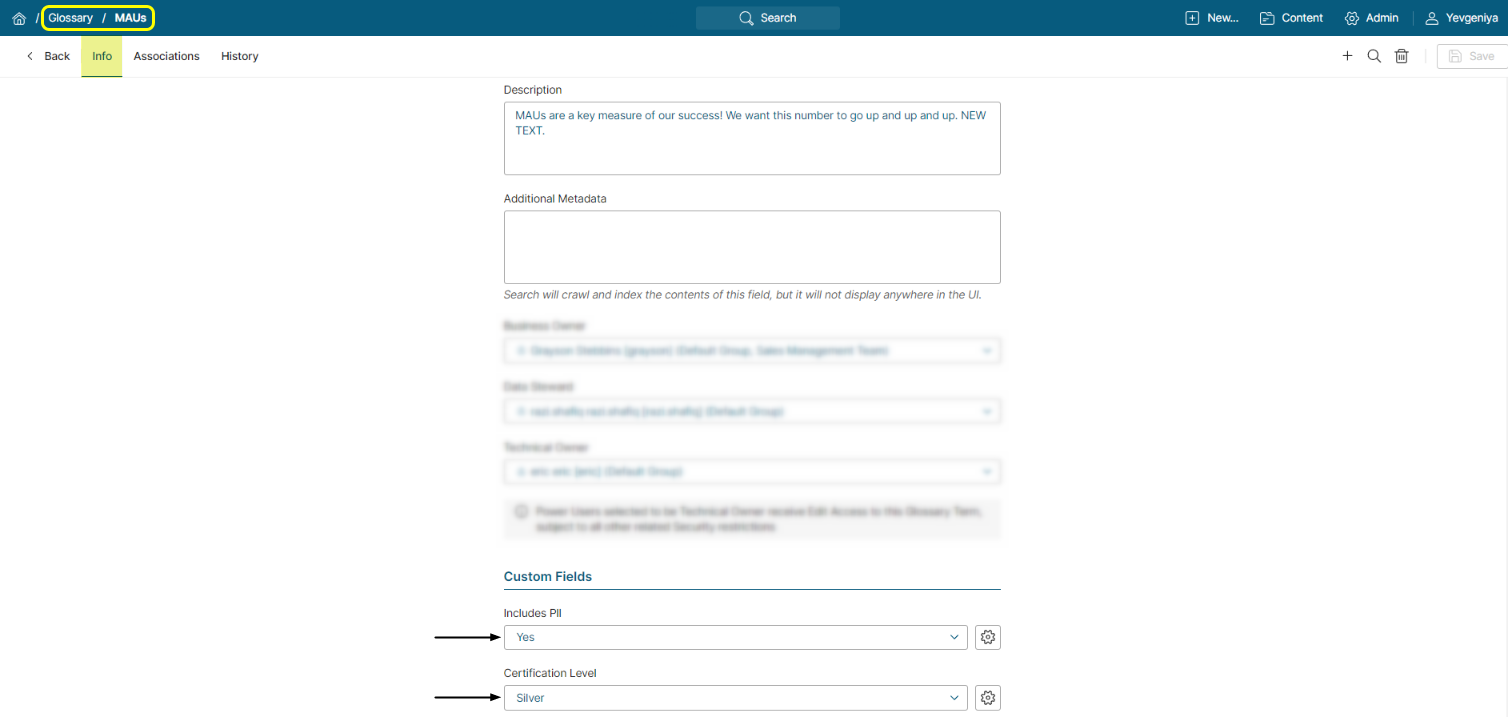 There is a way to sync Custom Fields from Atlan with Glossary Terms in Metric Insights.