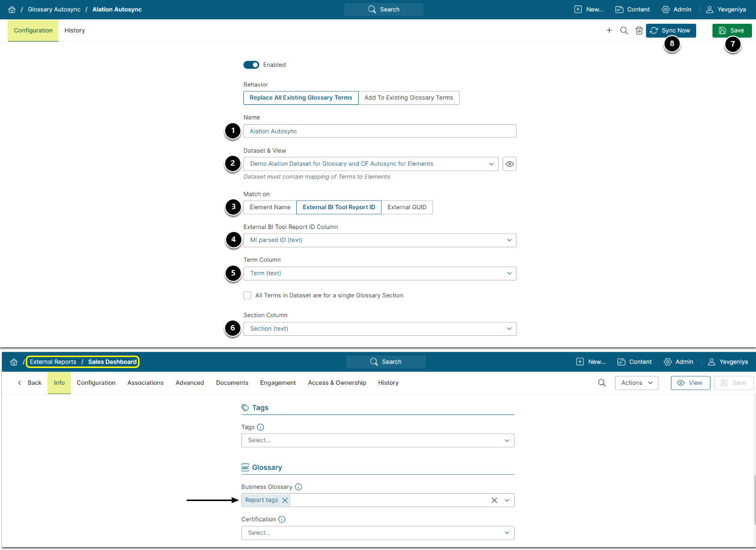 [Sync Now]- As a result, Glossary Terms will be assigned to Elements whose objects exist in Alation.