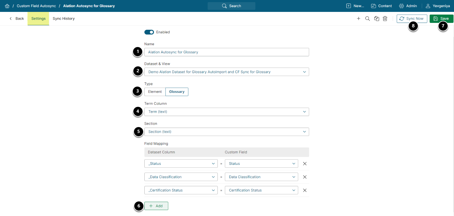 1. Sync Custom Fields with Glossary Terms