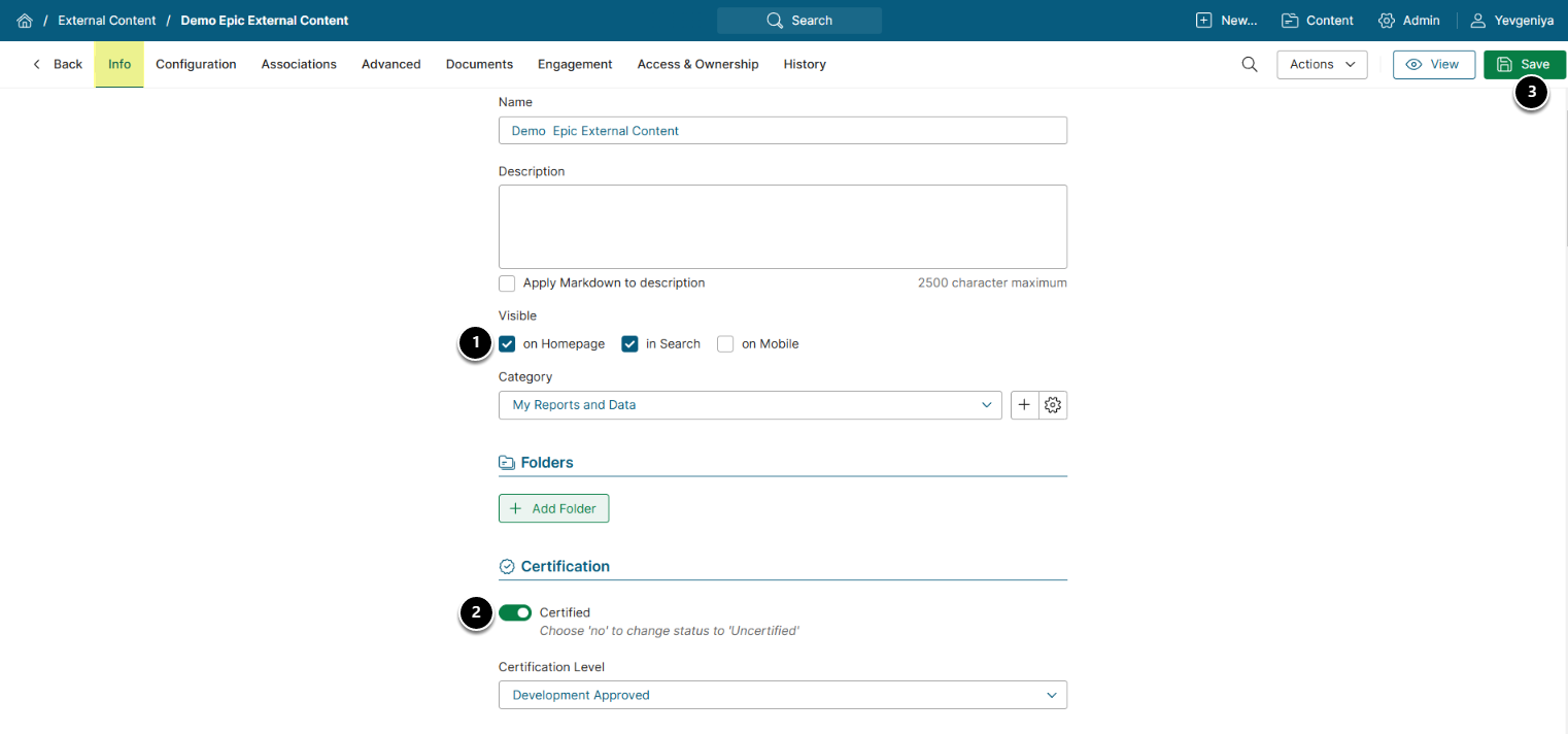 - Category: Assign the External Content to a Category.