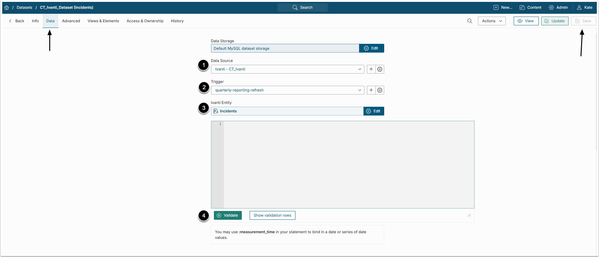 - Data Source: Select the connection profile you have created for Ivanti plugin