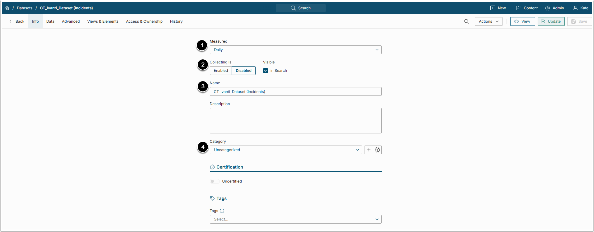 - Trigger: Specify the Data Collection Trigger that will be used to collect data for your Dataset