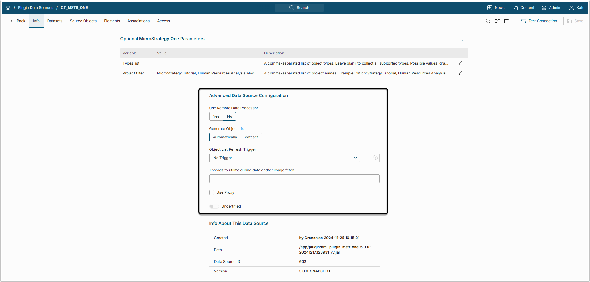 This article describes the process of creating a Plugin Data Source to connect to MicroStrategy One. This Data Source will allow data from existing MicroStrategy One objects to be used in building Elements using Metric Insights tools.