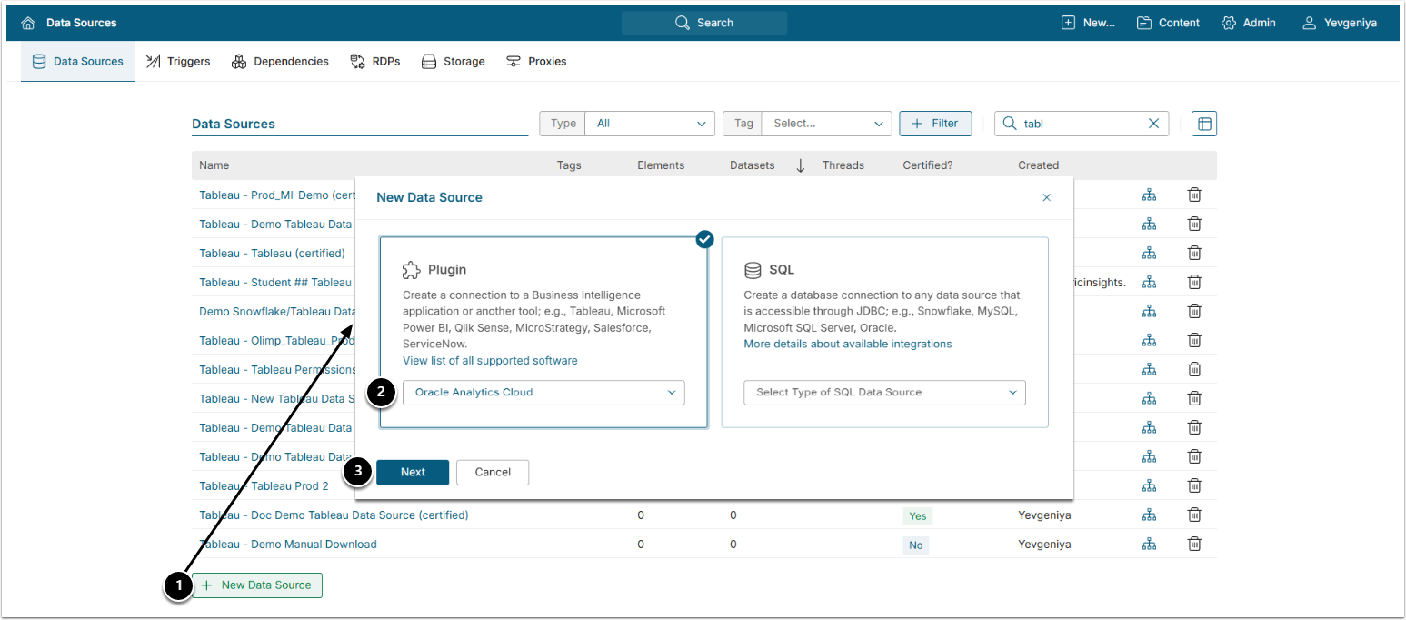 - Choose "Oracle Analytics Cloud" from Plugin drop-down list.