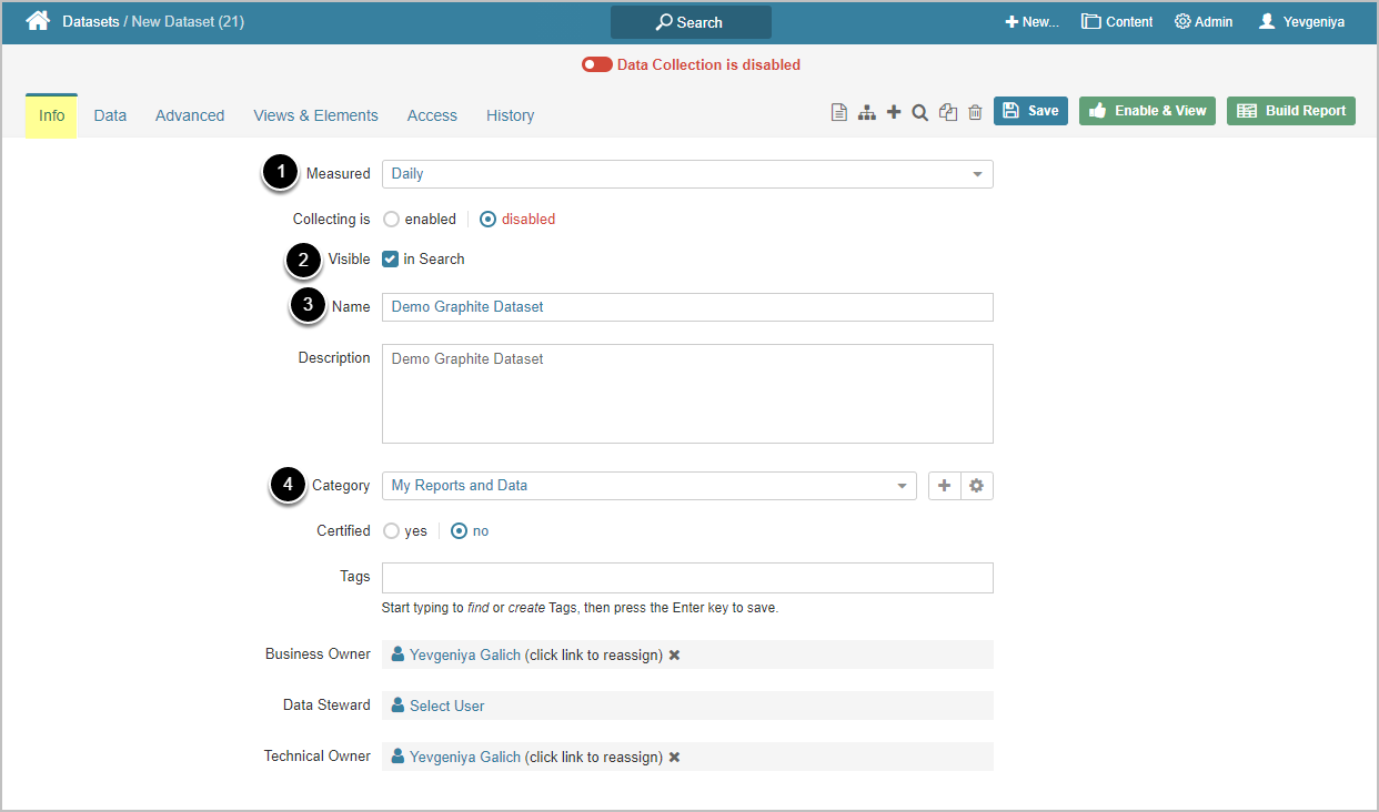 The article describes how to define the basic settings for Dataset sourced from Graphite.