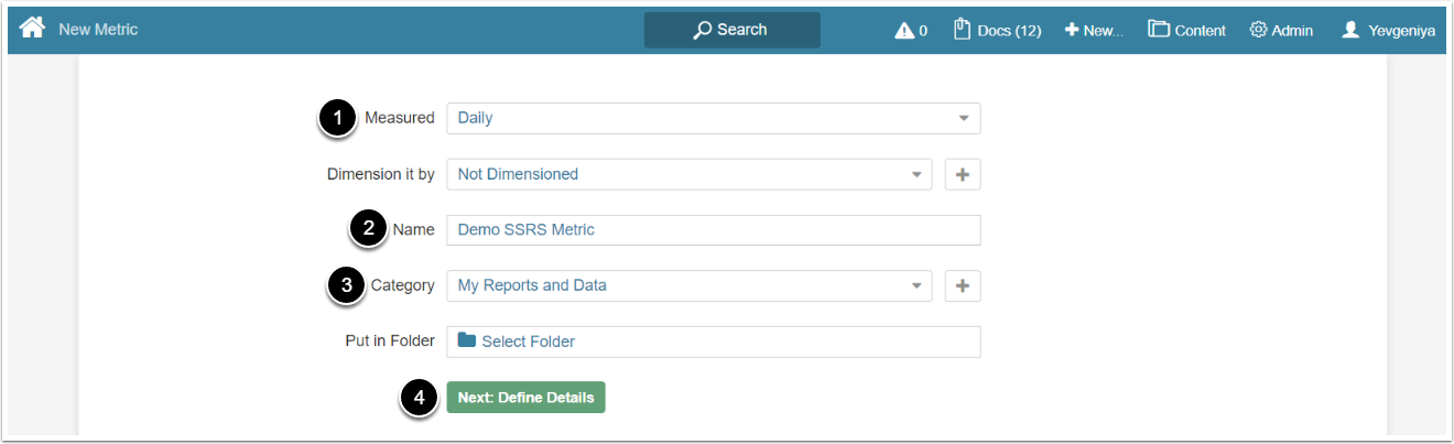 - Choose Microsoft SSRS Report that should serve as a basis for Metric