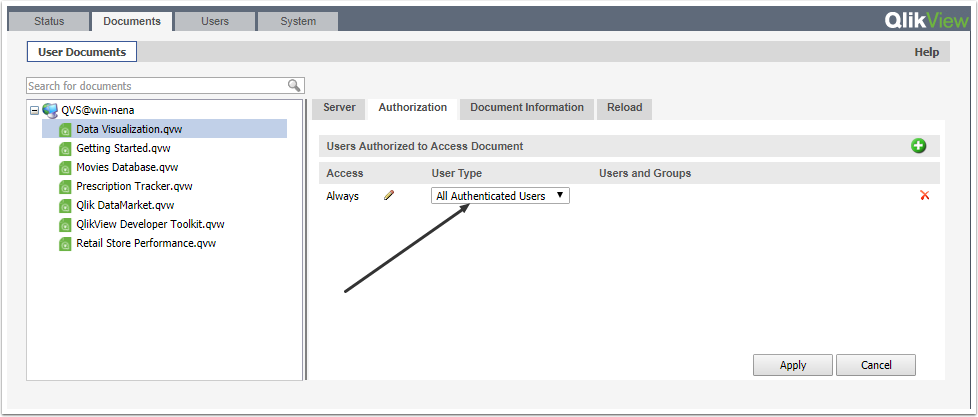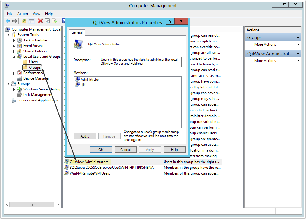 NOTE: Make sure that the user whose credentials are provided when establishing connection with QlikView server has access to required Documents and is a Member of a QlikView Administrators Group (see the picture pelow).