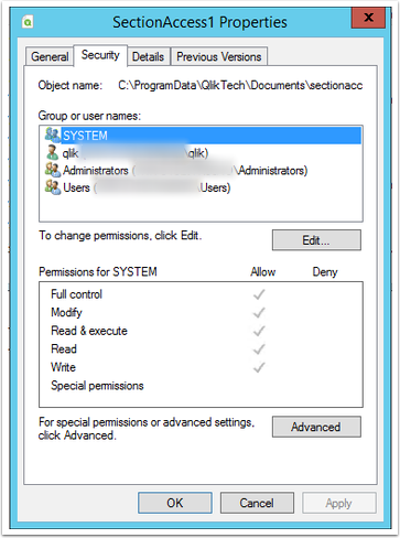 Make sure that Windows user that is used in the QlikView connection profiles has permissions to access .qvw document in Windows (Right click .qvw doc > Security > Edit > Add qlik user > Apply Full control permissions and Save). After that we can get QlikView object into Metric Insights. This needs to be done because with NTFS auth Windows controls docs permissions and if user is not in the list of users that have full access to a doc, QlikView plugin can't open this object and get its Metadata.