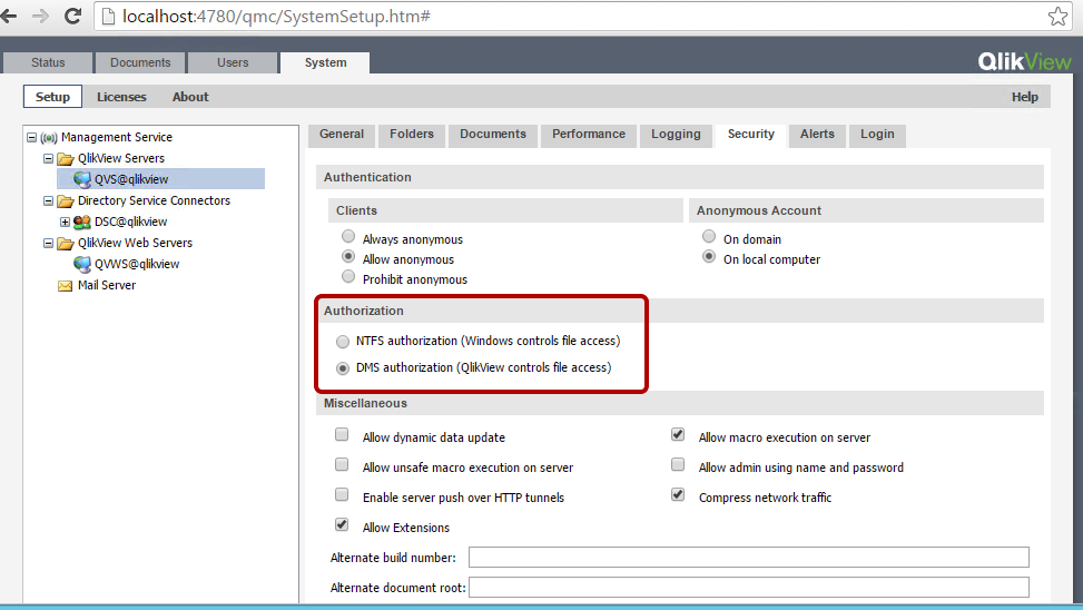 When installing QlikView Server, either QlikView Web Server (QVWS) or IIS Authorization can be used. Prerequisites per both options are described below.