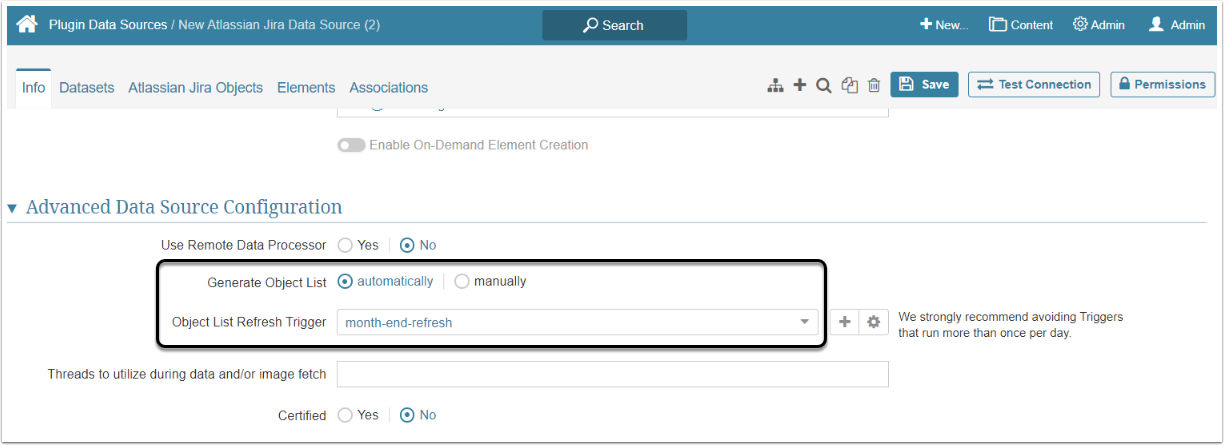 - "automatically": All reports are fetched by the system- Object List Refresh Trigger: Define when the data will be collected