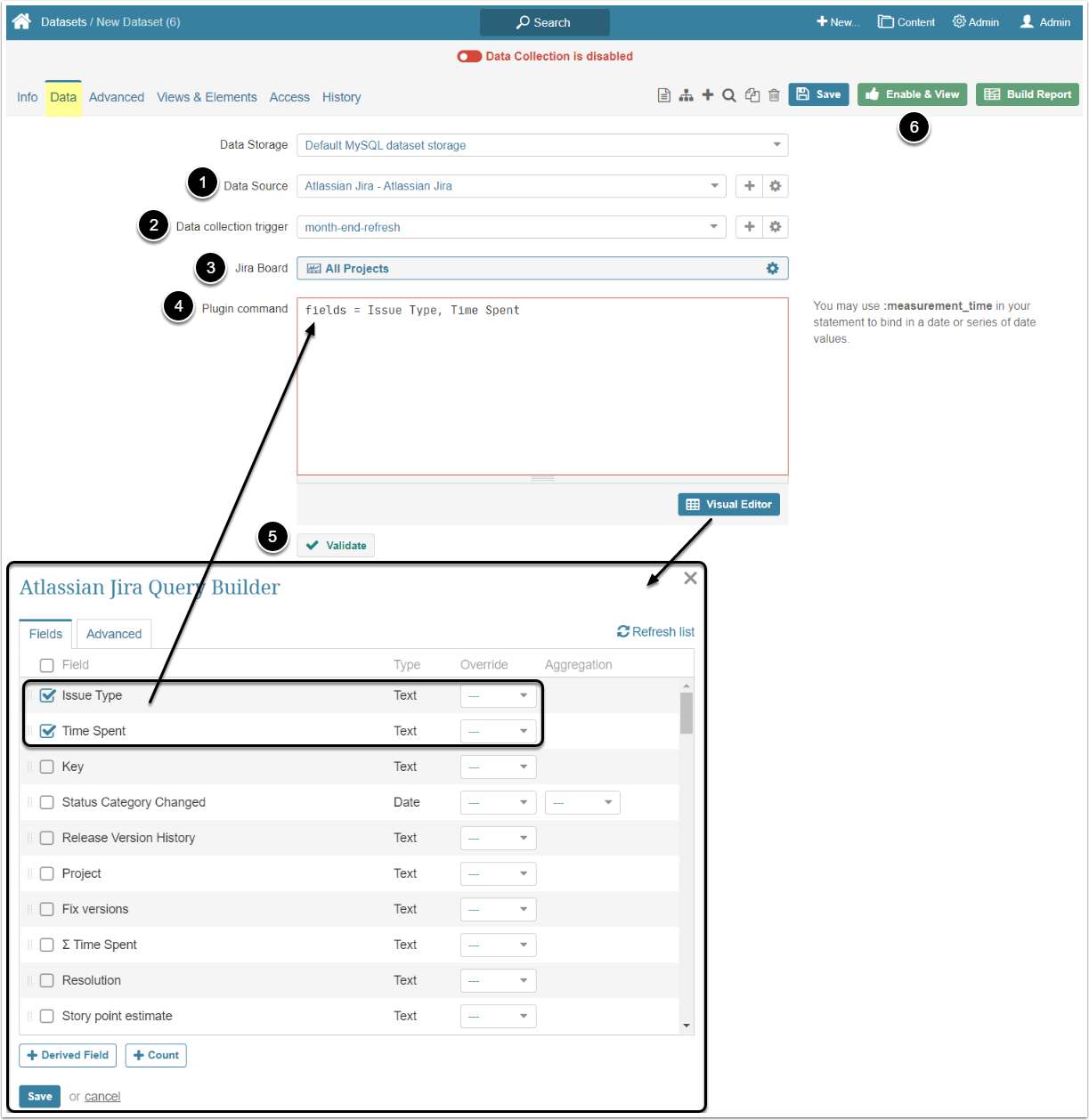 - Data Source: Select the connection profile you have created for Atlassian Jira