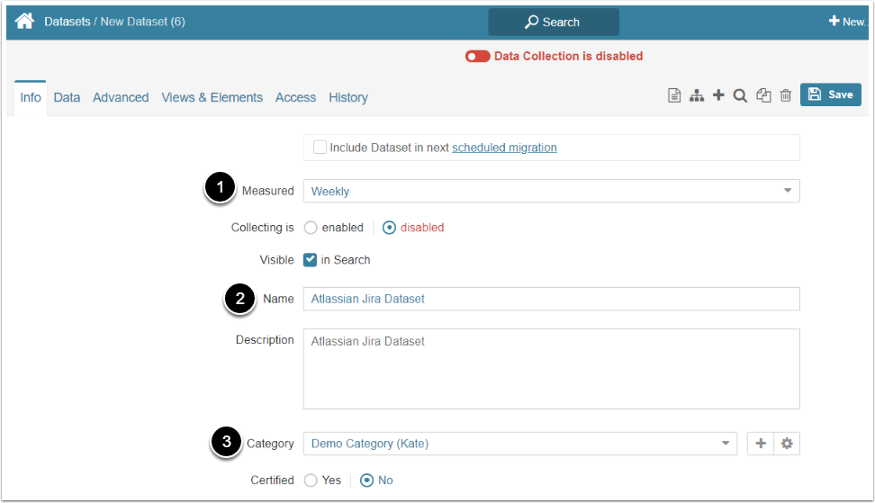 - Element: Select an Atlassian Jira object that should serve as a basis of your Dataset