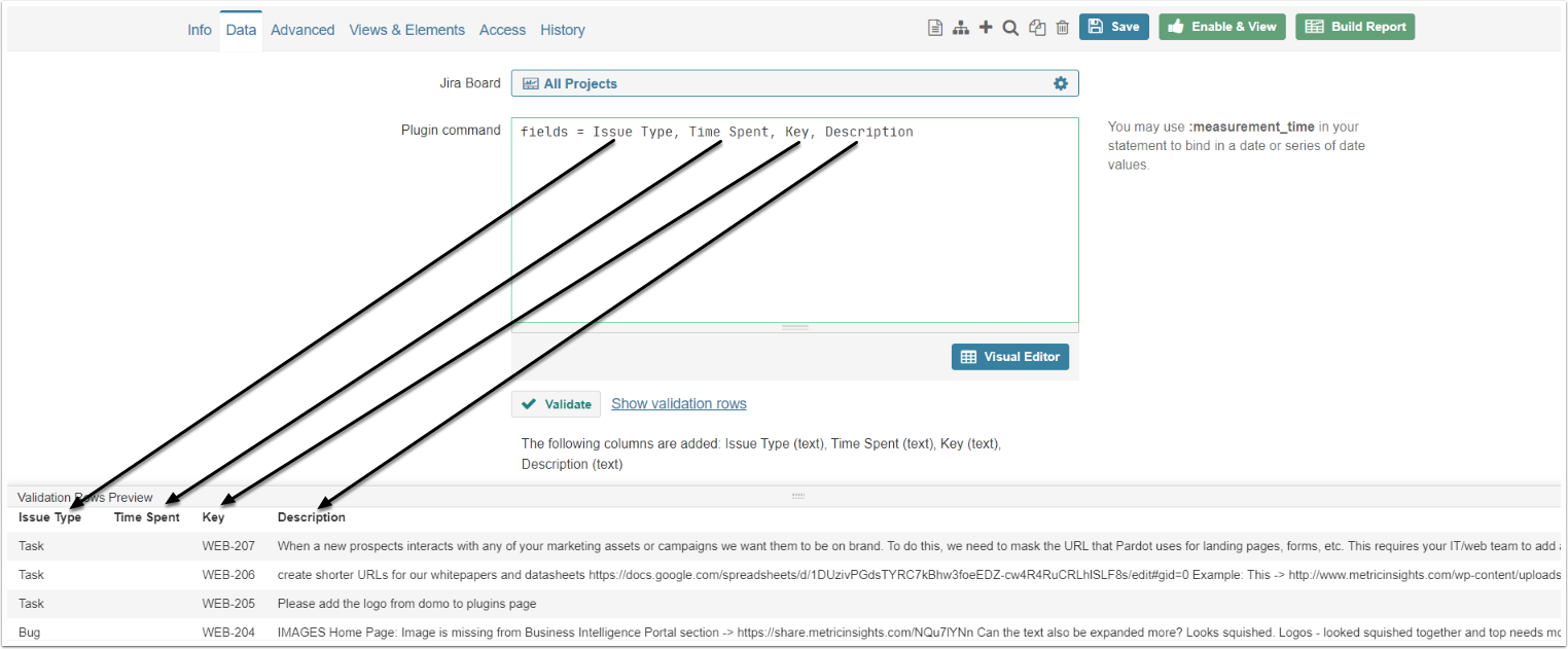 Plugin Command: Input an MIQL command listing all data that needs to be fetched from the server- Use Visual Editor if not sure about the command