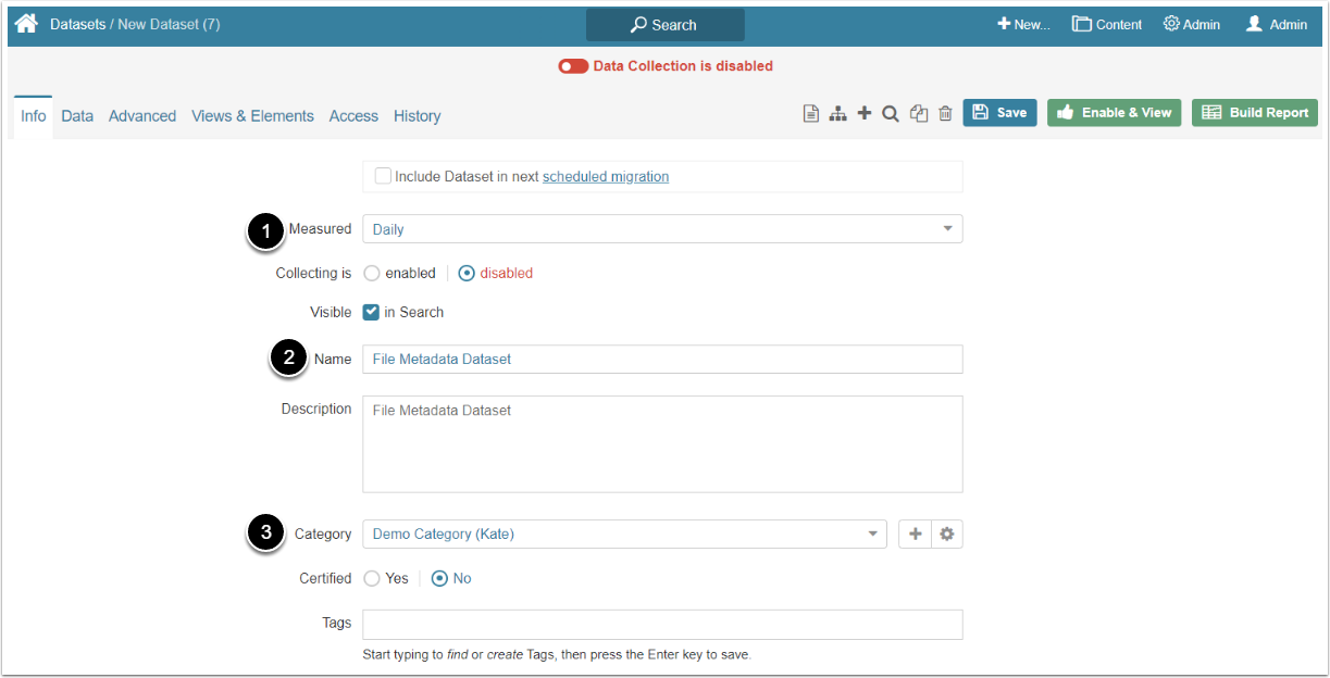- Data collection trigger: Specify the Trigger that will be used to collect data for the Dataset