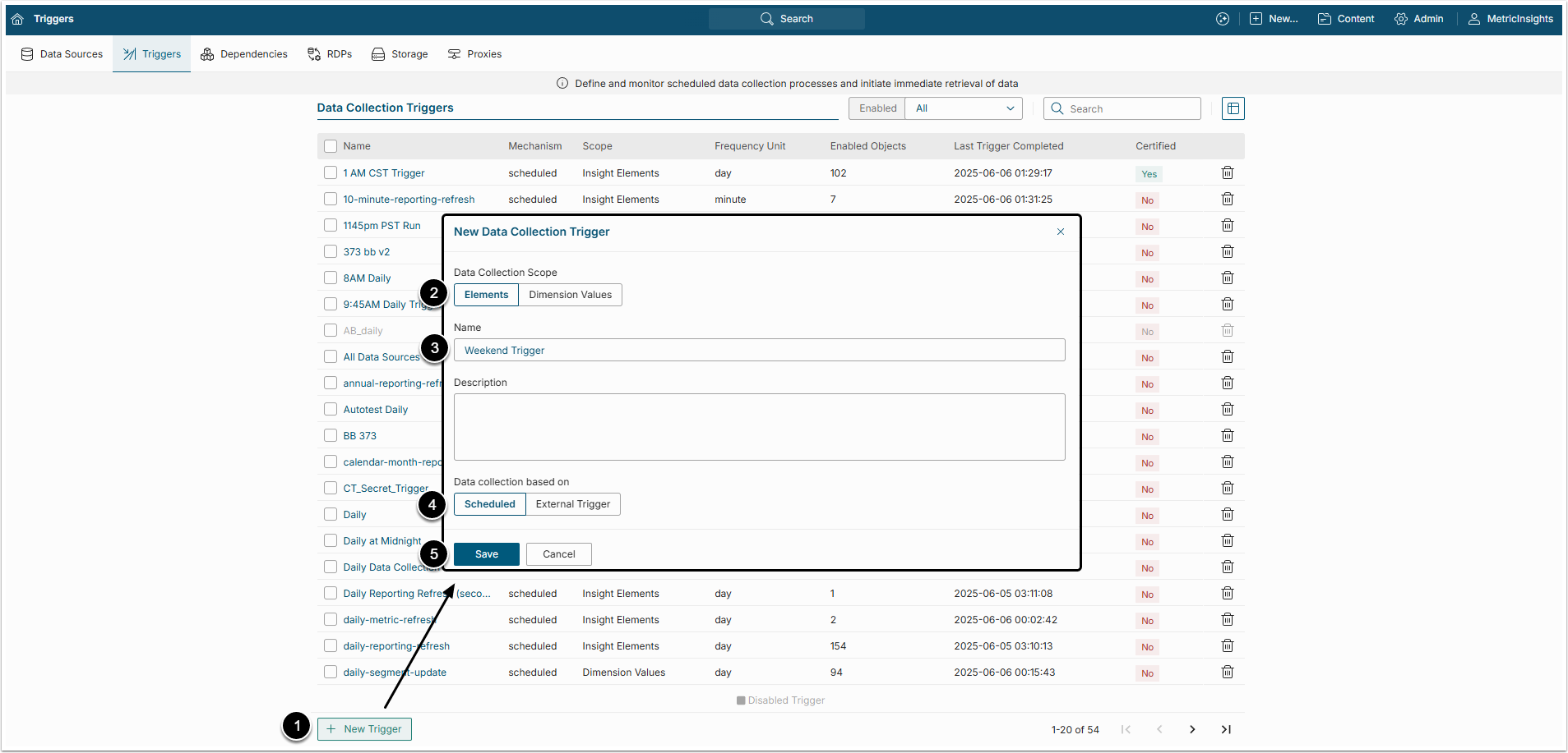 This article outlines how to create a new Data Collection Trigger to run based on a pre-specified schedule. The same process can be used when defining existing Triggers.