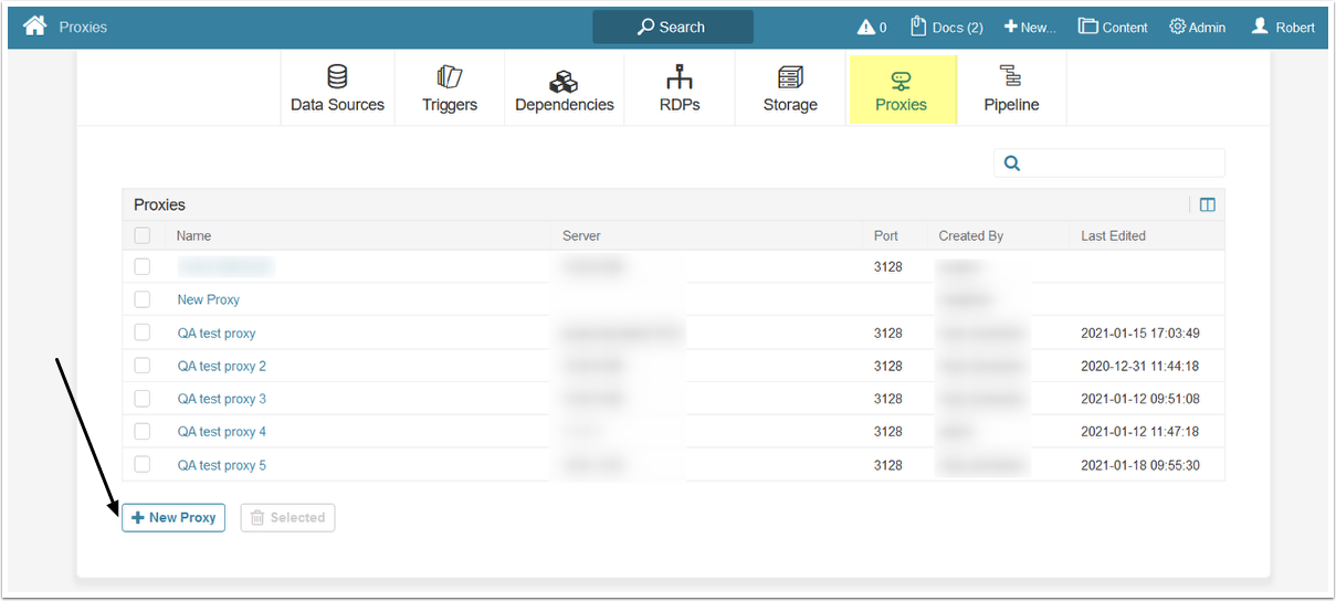 A Proxy object is used to establish connectivity to the SQL Data Sources, Plugin Data Sources, and Data Storages that function behind proxy servers. In order to connect to such Data Sources/Data Storages, you need to create a Proxy object.