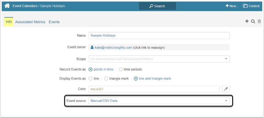 Events may be manually associated with an Event Calendar using one of the two methods described in this article: