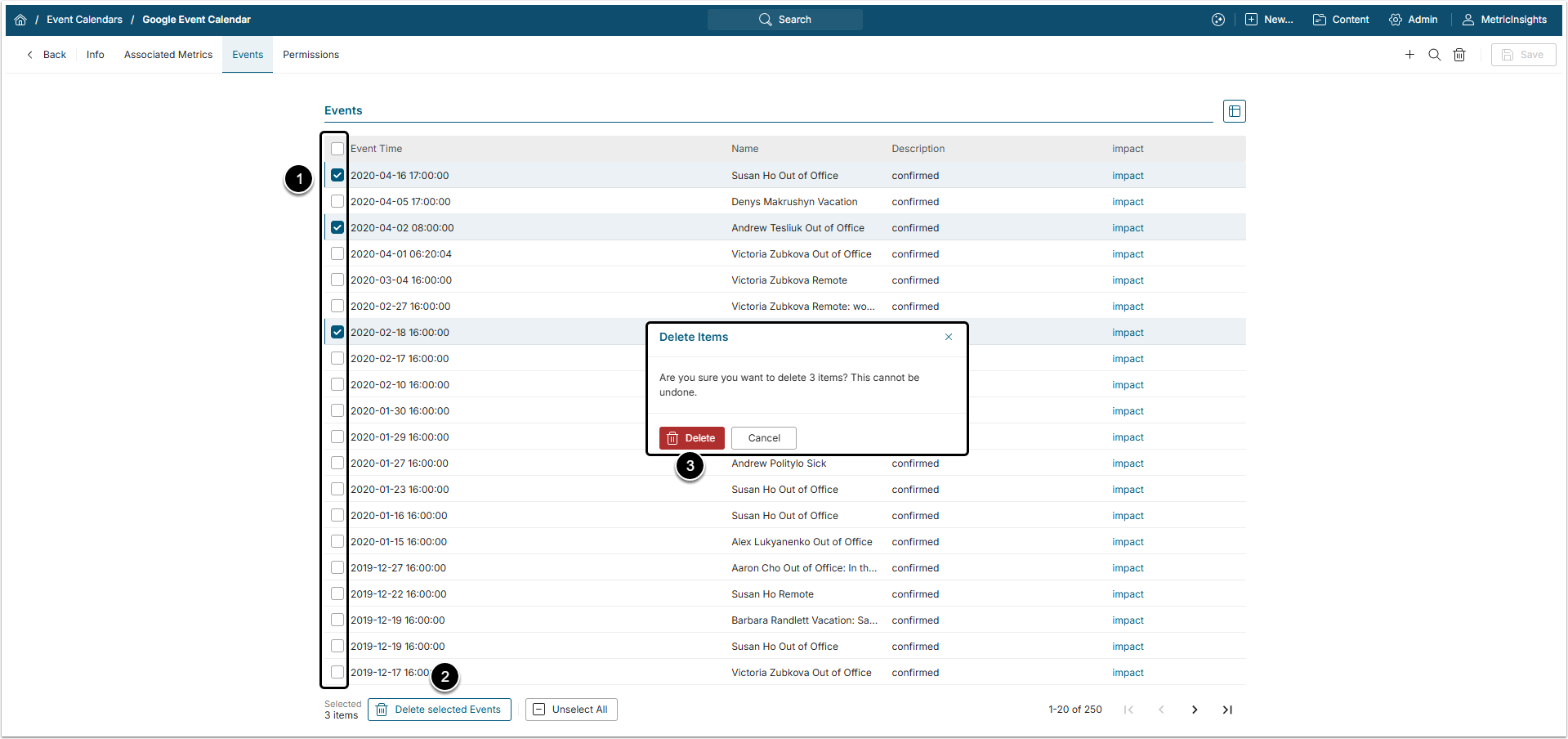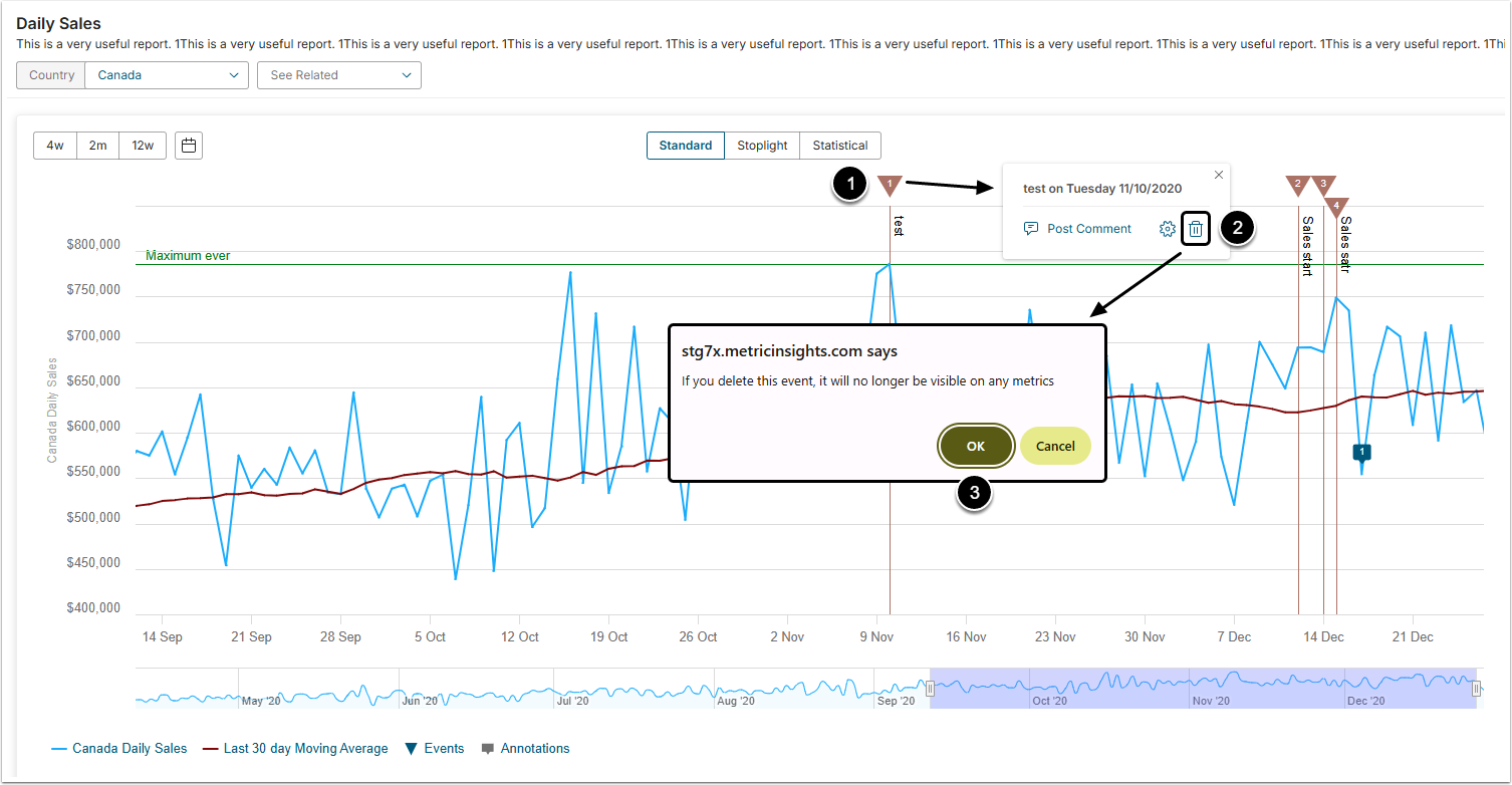 IMPORTANT: If you delete an Event, it is removed from the system completely and will no longer be visible on any Chart.