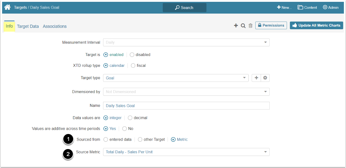 - Source Metric: Choose an available Metric from the dropdown list containing those Metrics that have the same Measurement Interval