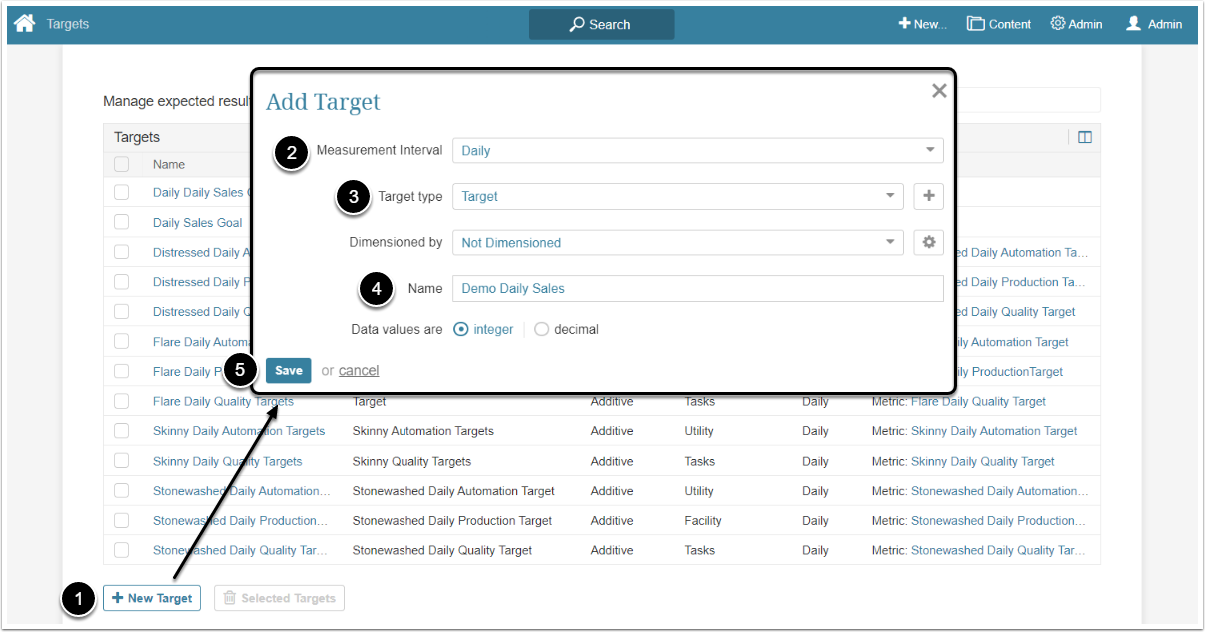 Deriving Values based on other Targets uses either aggregation of data or interpolation, the process by which the value of a higher-frequency Target Value is inferred based on an existing lower-frequency target. For example, determining daily Target Values from an existing monthly Target. This article describes how to create a higher-frequency Target from a lower-frequency one.