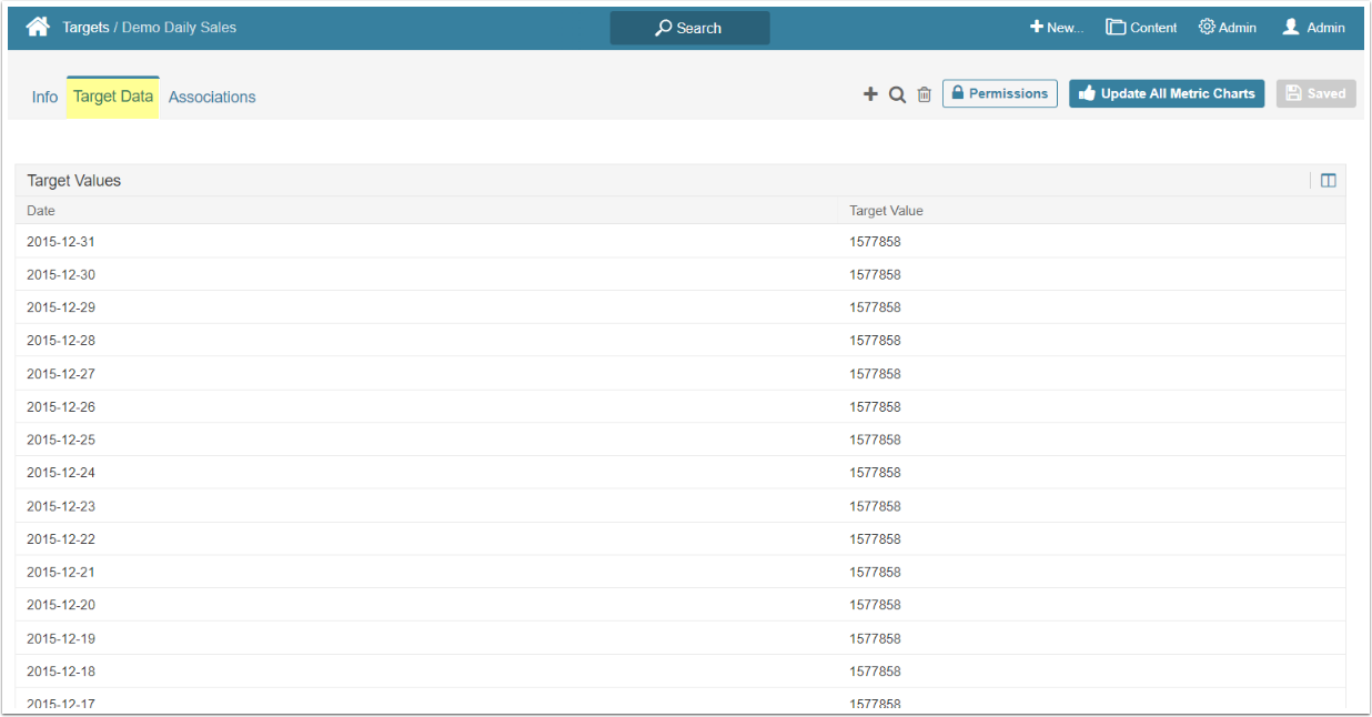 | Daily | Weekly, Monthly, Annual, Fiscal Month, Fiscal Quarter, Fiscal Year | Target Value for target period in which the specific day falls |