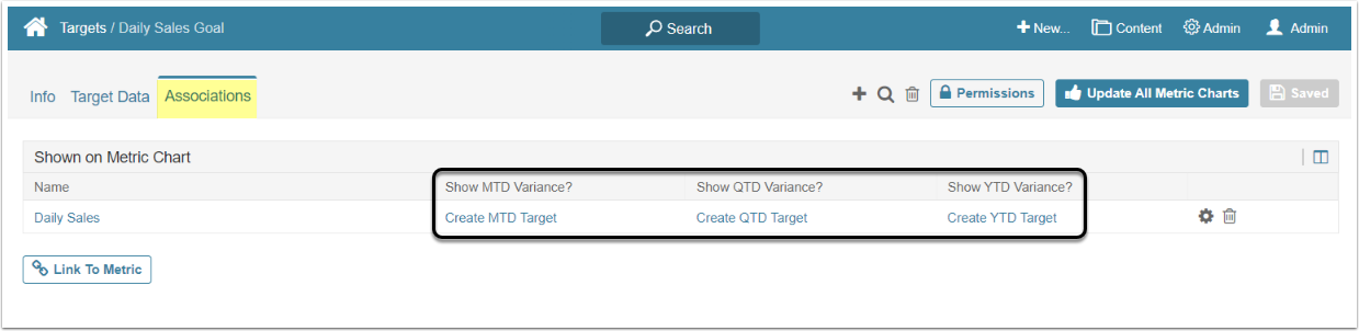 This article describes how to create a Period-to-Date (XTD) Target Variance of another Target in Metric Insights.