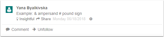 The following markdown code inserted, for example, in a Comment, displays special characters as shown below: