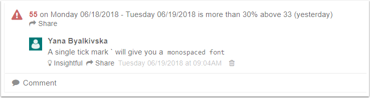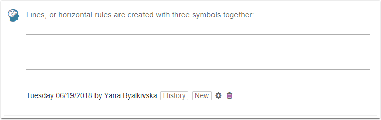 The following markdown code inserted, for example, in an Expert Analysis, produces four lines as shown below: