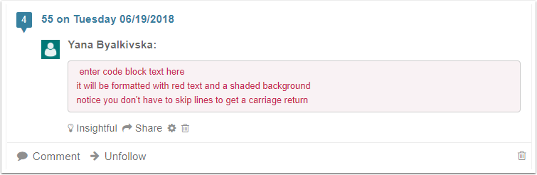 The following markdown code inserted, for example, in a Comment, produces the formatted text as shown below: