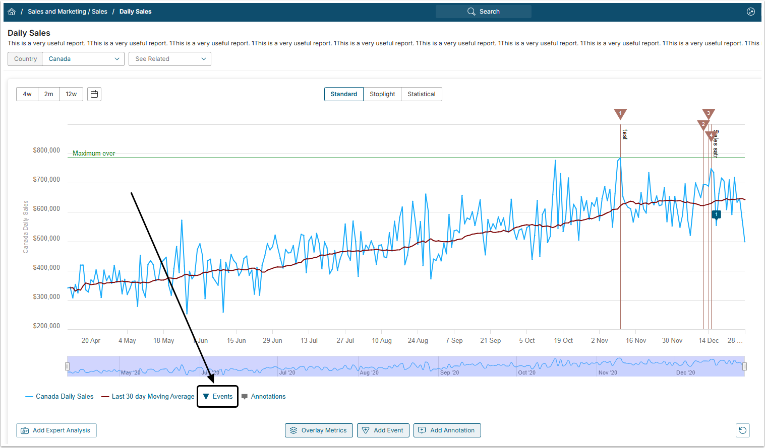 To make Events visible again, single-click the Events legend button one more time.