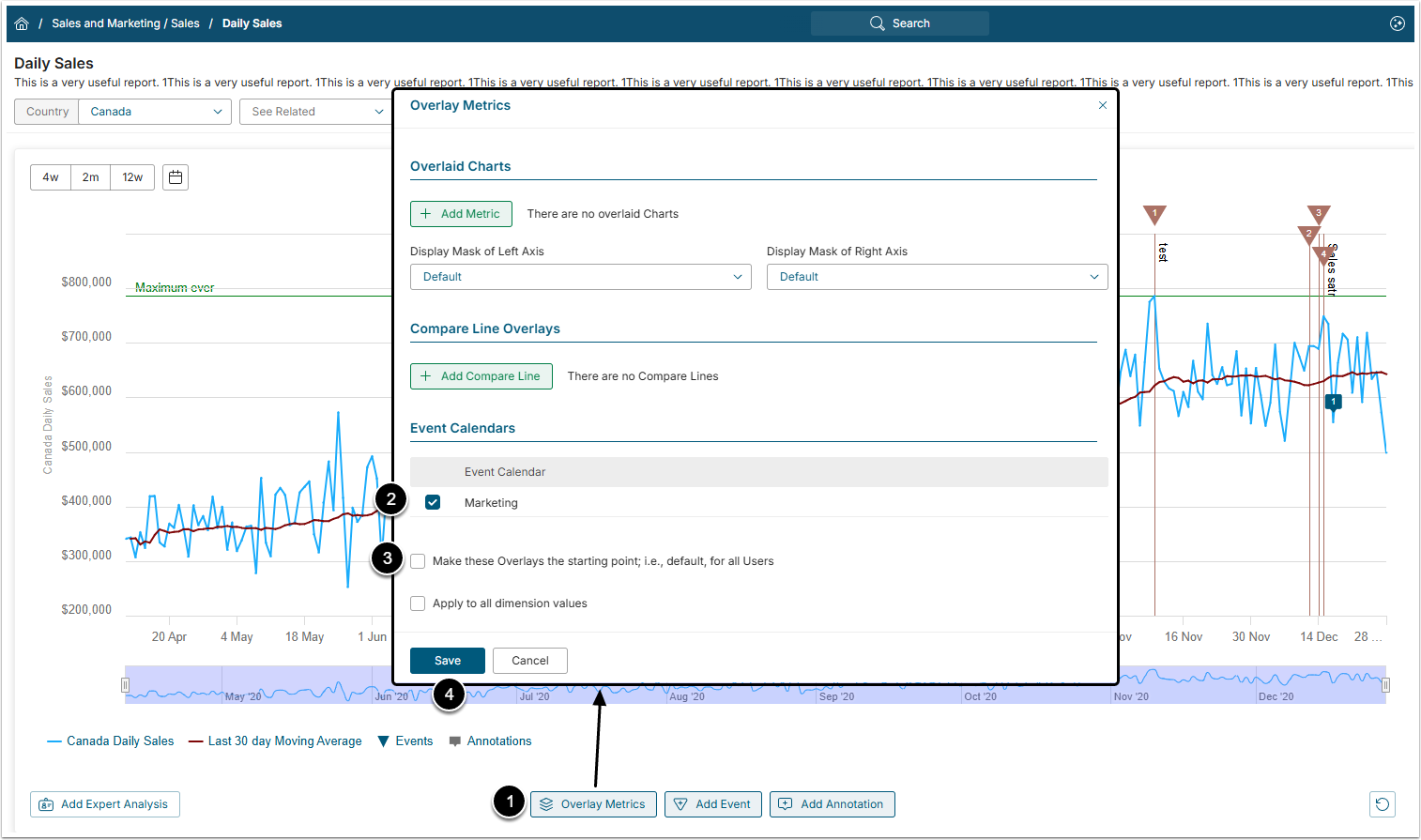 - Сlick [Overlay Metrics] below the Chart legend to open the Overlay Metrics window.