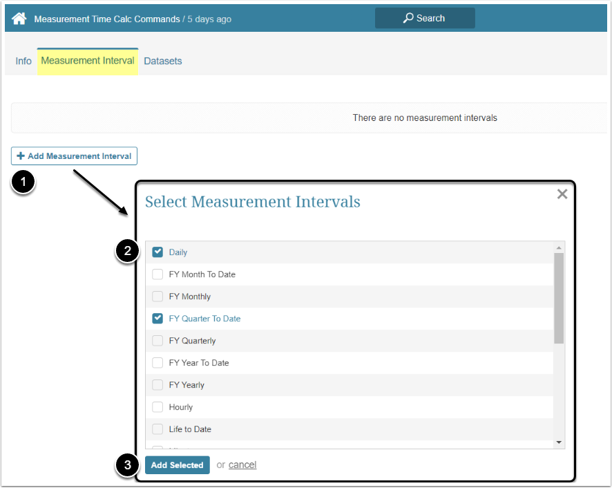 This article describes how to add a new Measurement Time Calculation interval. This interval defines the :measurement_time variable that can be used in the Dataset SQL statement.