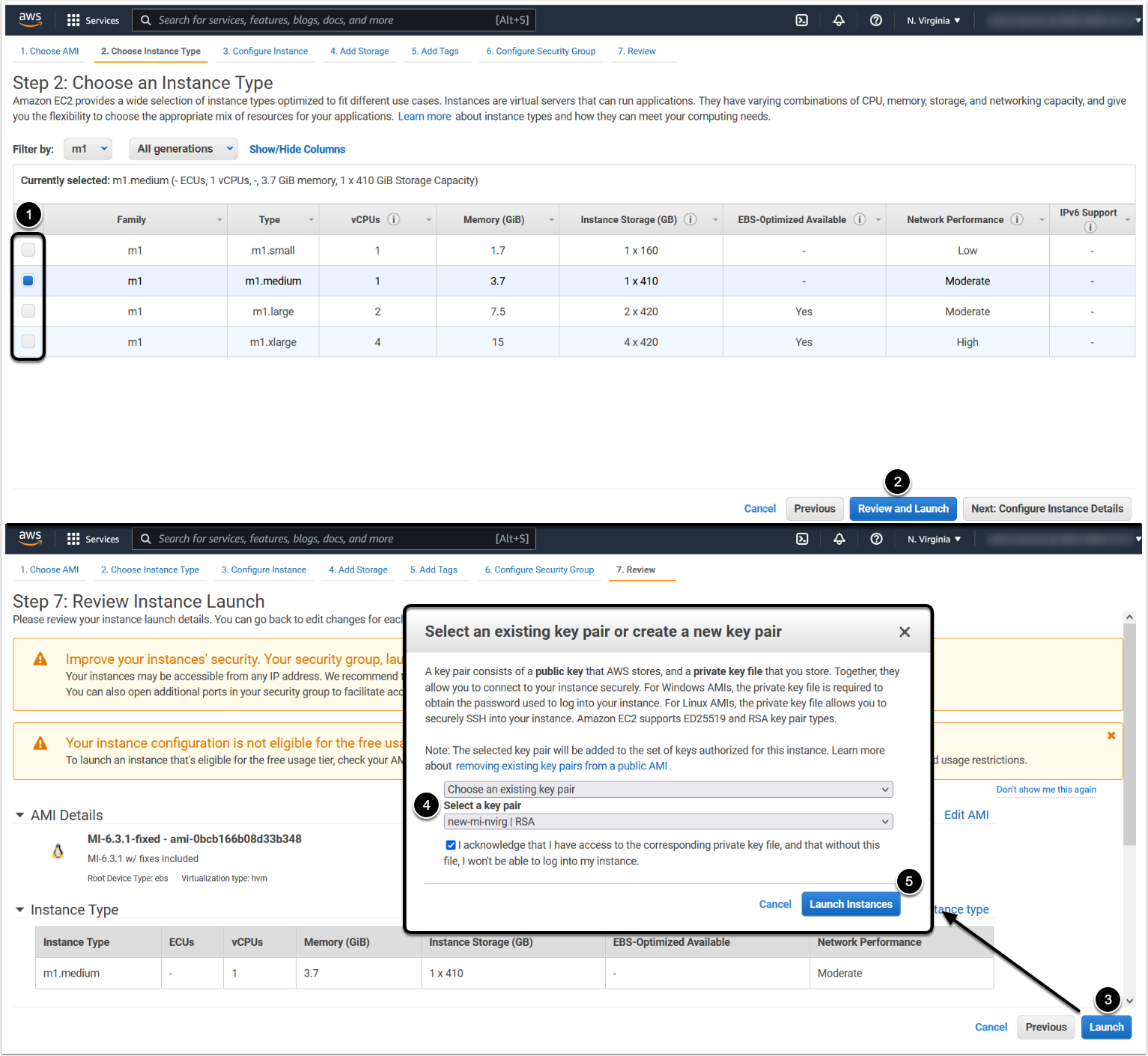 - Choose an EC2 Instance Type- The minimum recommended instance by size is type m1.medium