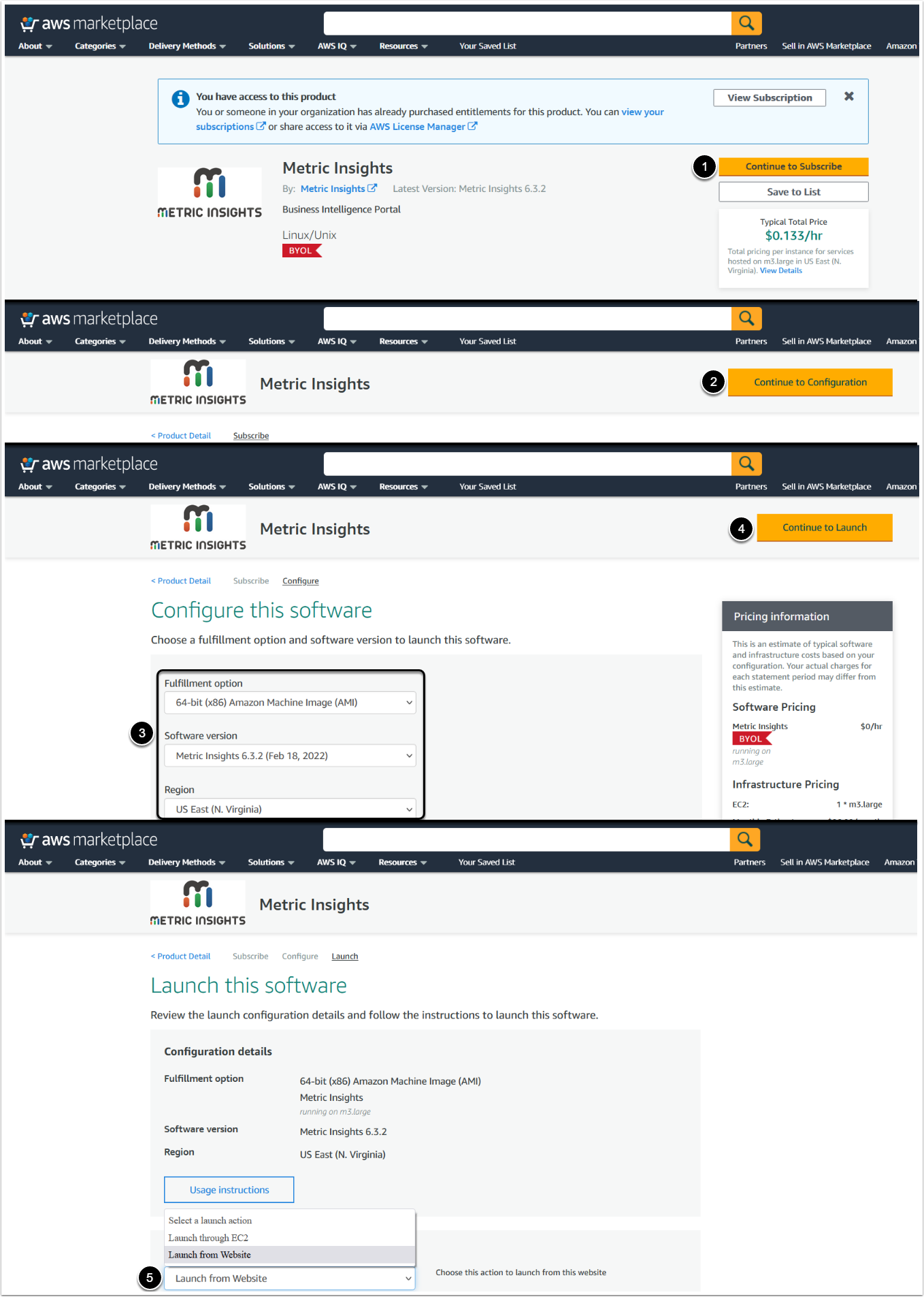 2. Access Metric Insights in AWS Marketplace and Select Launch Options